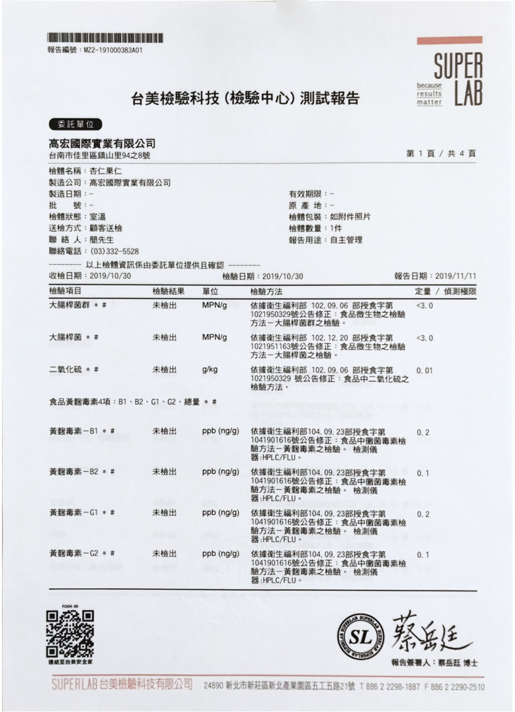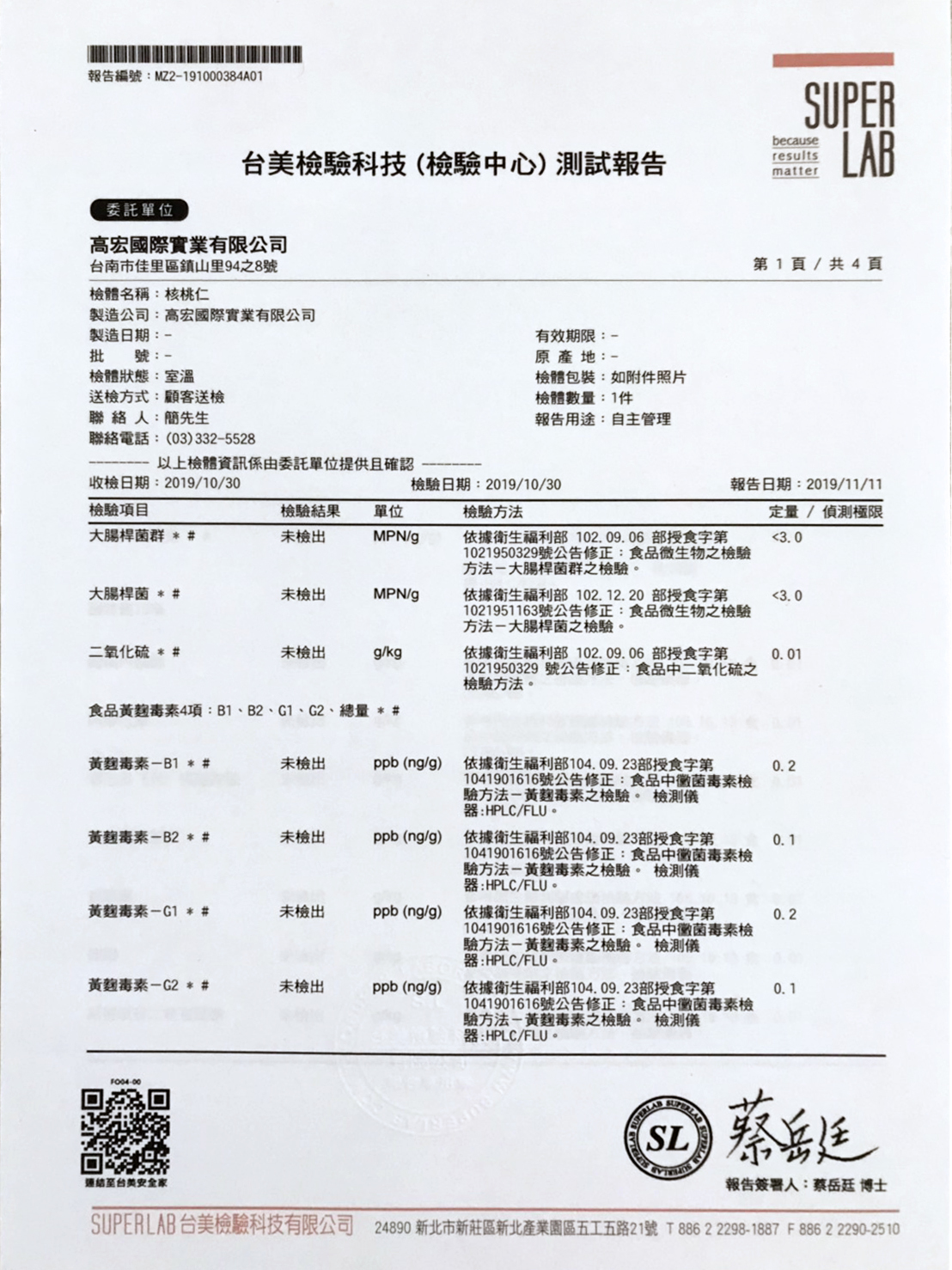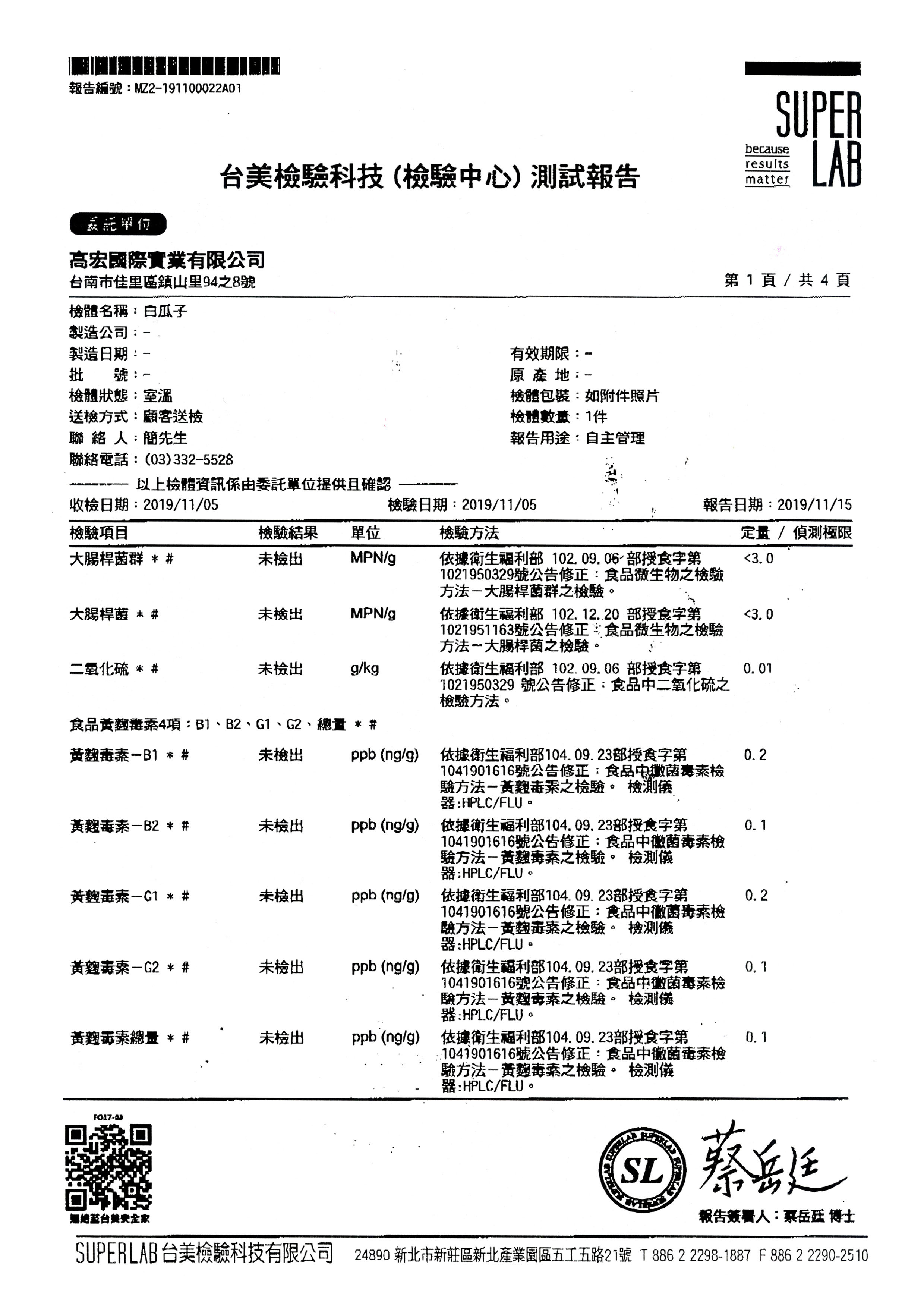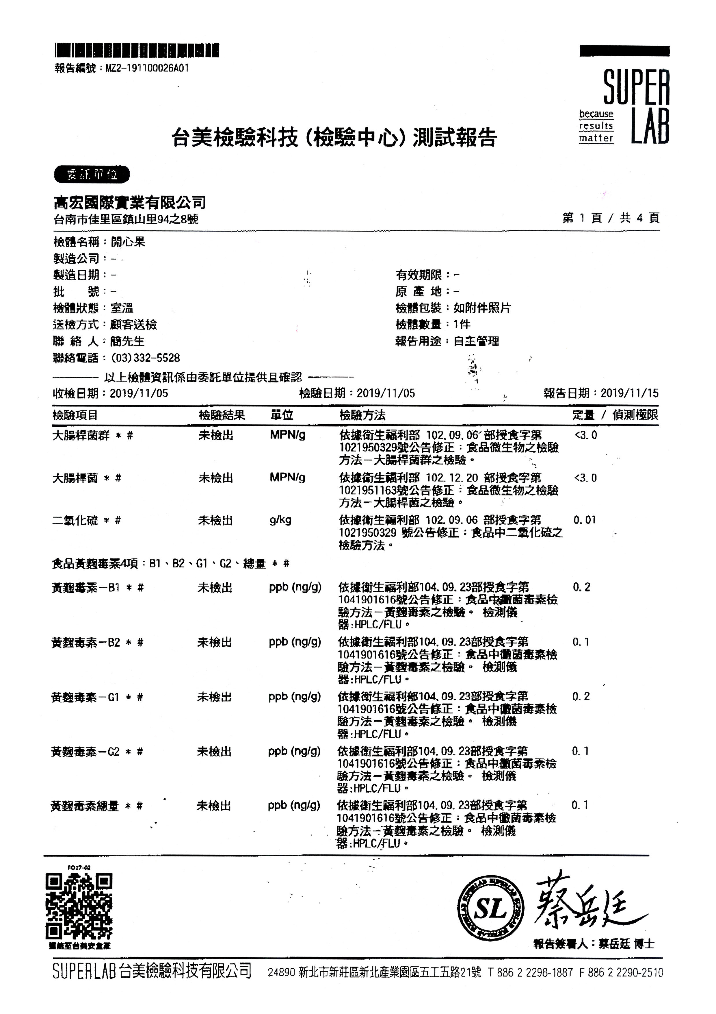 大腸桿菌群、大腸桿菌、黃麴毒素B1、B2、G1、G2、二氧化硫