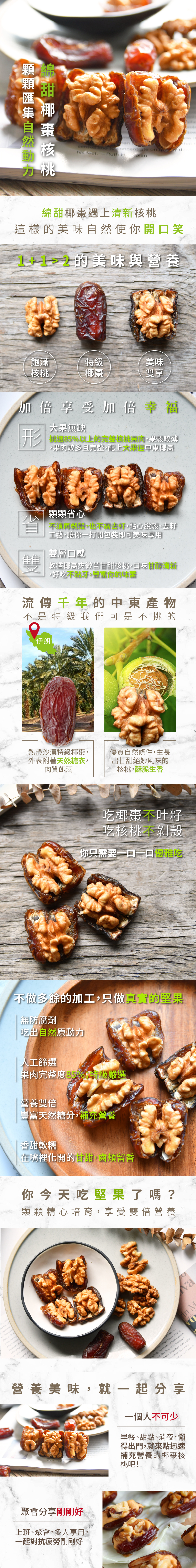 成份:椰棗、核桃、精緻棕櫚油、砂糖、維他命E(抗氧化劑)