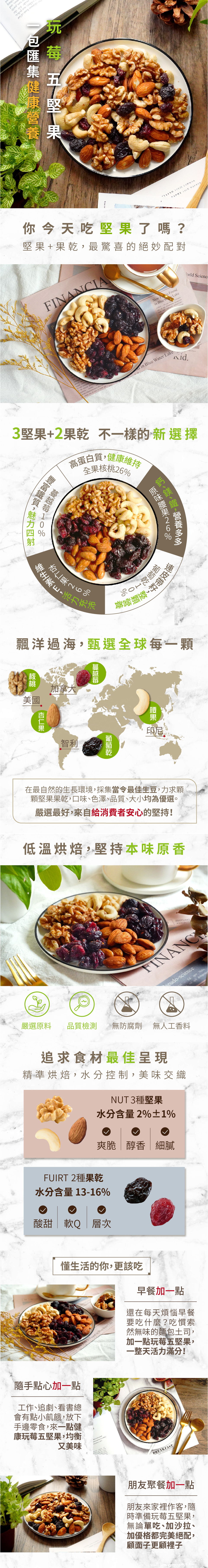 成份:杏仁果、核桃、腰果、葡萄乾、蔓越莓、精製棕櫚油、維他命E(抗氧化劑)